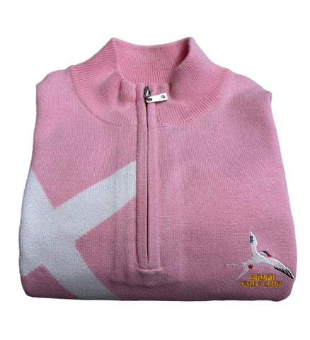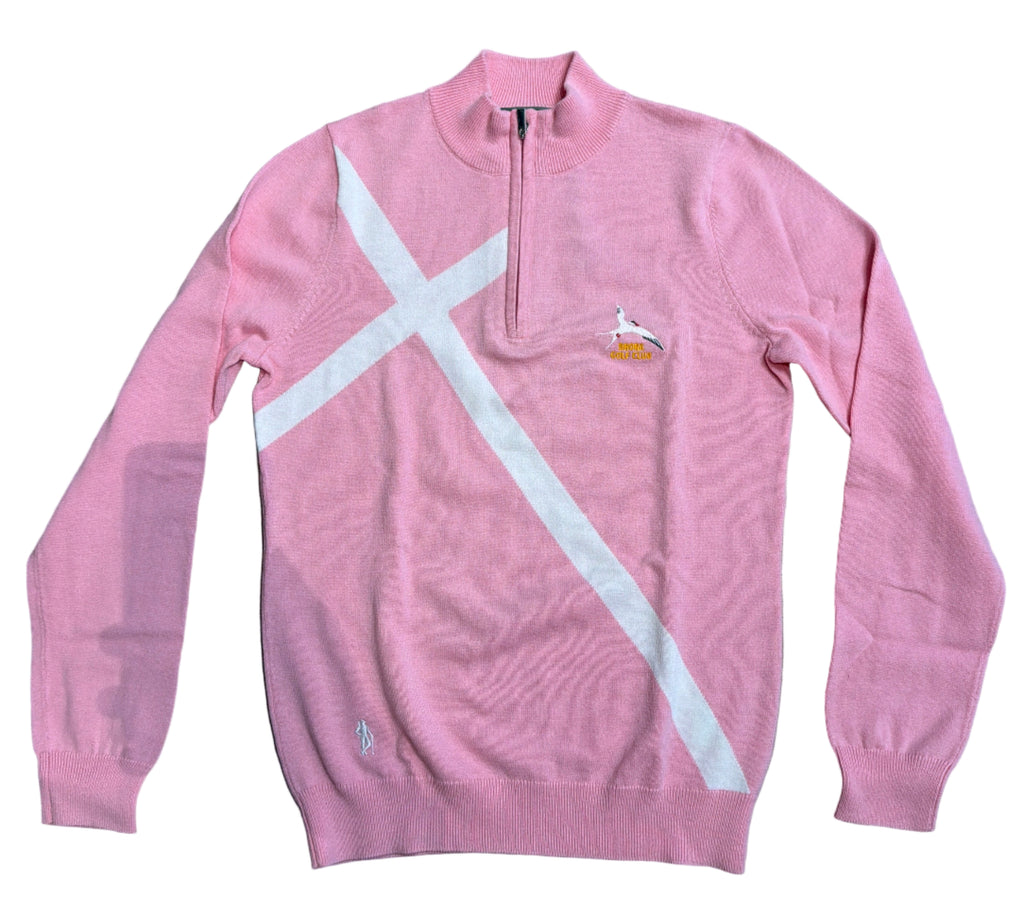 Dedicated to Scotland, the birthplace and Home of Golf and Glenmuir, our g.Saltire men’s quarter zip sweater is a striking design inspired by St. Andrew’s cross. Designed exclusively by Glenmuir for the victorious 2014 European Ryder Cup Team at Gleneagles, in conjunction with Captain Paul McGinley, this iconic zip neck sweater embodies the pinnacle of golfing heritage, modernity, and pride. The cross is intarsia-knit, meaning the design is fully integral to the sweater, knitted smoothly for a refined look. Made from 100% combed cotton, this men’s jumper has a soft, easy next-to-skin feel without the irritation some other yarns can provoke, so you can just be comfortable and concentrate on your game. This particular g.Saltire sweater design is available in a saltire sleeveless slipover and saltire knitted hoodie.