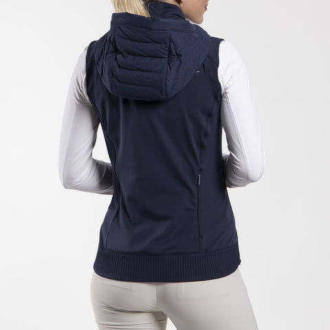 A modern style, this hooded gilet features woven chambers, bonded rib sleeve cuffs, and a bottom band for added elegance. Soft, water-repellent fabric and an insulated front provide added warmth, while the spacious back pocket conveniently secures your essentials. Perfect for cool to cold days.